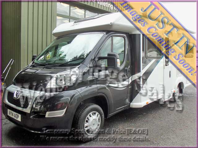 No Link Available. A 4 berth RHD 6 Speed Manual 2.2TD Lo-Profile Coach-built Motorhome (2014) on an Alko chassis with PAS,4.4m awning, Tv aerial, cycle rack, remote central locking. Colour: Grey/White. Cab air-con, swivel seats, airbags, over-cabin roof-light & small storage, cabin blinds, electric windows & mirrors, radio/CD player. Central lounge/dining area with 2 forward facing seats with seat belts (with insert to make L shape) & removable table, a small side facing sofa. The kitchen has a fully fitted gas cooker (1 elec & 3 gas hobs), microwave oven, fridge/freezer, sink, drawer & cabinets. Concertina door to rear bedroom with a fixed double bed & wardrobe. Rear washroom with a shower cubicle, sink, wc, cabinets & mirror. Curtains, screens & blinds, door fly screen, large roof-light, carpet & lino, ample storage, imitation leather trimmed upholstery. Alde heating, spot and ceiling lights, 240/12V, leisure battery, Tv point. E&OE.