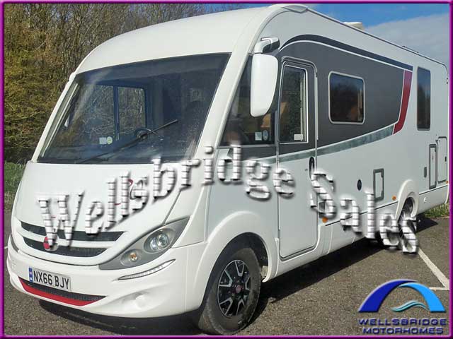 No Link Available. A 4 berth RHD 6 Speed Manual 2.3TD 2 Door A-Class Motorhome (2016) with PAS, cruise control, 5.0m awning, solar panel, Tv aerial, alloy wheels, garage. One Owner from New. Cab air-con, swivel seats, airbags, over-cabin drop-down double bed, cabin blinds, 1 electric window, electric mirrors, radio. Half dinette with 2 forward facing seats with seat belts & removable table, a single side facing seat. The washroom has a shower behind fold-away wall, sink, wc, cabinets & mirror. The side kitchen has a surface mounted 3 burner gas hob, oven/grill over the fridge/ice box, sink, drawers & cabinets, cutlery drawer. Rear bedroom with a fixed double island bed & 2 wardrobes. Net curtains, screens & blinds, door fly screen, large roof-light, lino flooring, ample storage, imitation leather trimmed upholstery. Truma heating, LED spot lighting, 240/12V, leisure battery, Tv point + Tv on bracket on wall, electric doorstep. Garage dimensions: L:2.05m, W:1.1m, H:1.12m. 2 Doors, Largest is W:0.84m, H:1.04m. E&OE.
